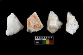 | Description / विवरण | There are n-4 of intact utilized flakes made up of Quartz. Some of them have bulge of percussion and some are flat flakes. |