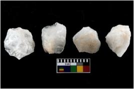 | Description / विवरण | There are n-4 of intact utilized flakes made up of Quartz. Some of them have bulge of percussion and some are flat flakes. |