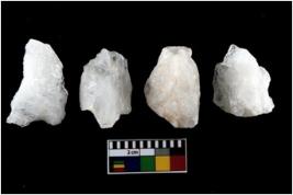 | Description / विवरण | There are n-4 of intact utilized flakes made up of Quartz. Some of them have bulge of percussion and some are flat flakes. |