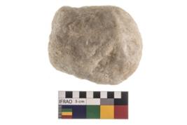 | Description / विवरण | A partially broken specimen of roughly round shaped hammer stone with battered periphery along with the circumference. |