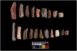 | Description / विवरण | A set of 20 number intact microlithic blades, made of chert. All these blades have retouched and sharp edges |