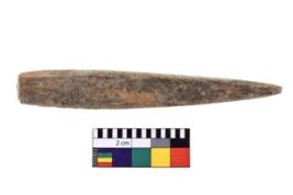 | Description / विवरण | A straight point with a flat body and a circular cross-section. It has one end broken and has dark yellowish brown colour. |