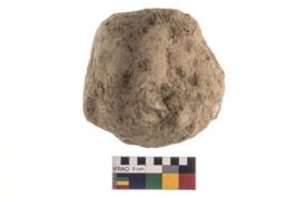 | Description / विवरण | A partially broken specimen of roughly round shaped hammer stone with battered periphery along with the circumference. |