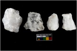 | Description / विवरण | There are n-4 of intact utilized flakes made up of Quartz. Some of them have bulge of percussion and some are flat flakes. |