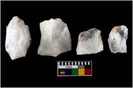 | Description / विवरण | There are n-4 of intact utilized flakes made up of Quartz. Some of them have bulge of percussion and some are flat flakes. |