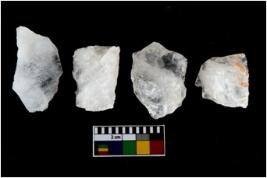 | Description / विवरण | There are n-4 of intact utilized flakes made up of Quartz. Some of them have bulge of percussion and some are flat flakes. |