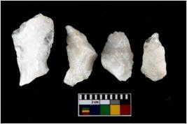 | Description / विवरण | There are n-4 of intact utilized flakes made up of Quartz. Some of them have bulge of percussion and some are flat flakes. |
