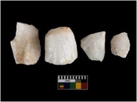 | Description / विवरण | There are n-4 of Cores. All are made of Quartz. All are fully fluted cores.2 with trace of crested ridge flake. |