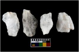 | Description / विवरण | There are n-4 of intact utilized flakes made up of Quartz. Some of them have bulge of percussion and some are flat flakes. |