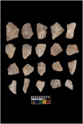 | Description / विवरण | There are n-20 of intact flake cores made up of Quartz. Some of them have bulge of percussion and some are flat flakes. |