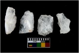| Description / विवरण | There are n-4 of intact utilized flakes made up of Quartz. Some of them have bulge of percussion and some are flat flakes. |