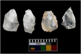 | Description / विवरण | There are n-4 of intact utilized flakes made up of Quartz. Some of them have bulge of percussion and some are flat flakes. |