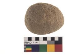 | Description / विवरण | A partially broken specimen of roughly round shaped hammer stone with battered periphery along with the circumference. |