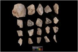 | Description / विवरण | There are n-20 of intact flake cores made up of Quartz. Some of them have bulge of percussion and some are flat flakes. |
