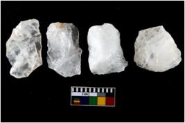 | Description / विवरण | There are n-4 of intact utilized flakes made up of Quartz. Some of them have bulge of percussion and some are flat flakes. |