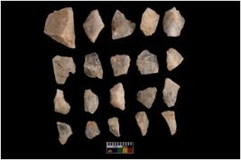 | Description / विवरण | There are n-20 of intact flake cores made up of Quartz. Some of them have bulge of percussion and some are flat flakes. |