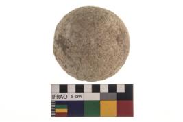 | Description / विवरण | A partially broken specimen of roughly round shaped hammer stone with battered periphery along with the circumference. |