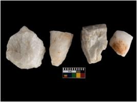 | Description / विवरण | There are n-4 of Cores. All are made of Quartz. All are fully fluted cores.2 with trace of crested ridge flake. |