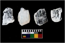 | Description / विवरण | There are n-4 of intact utilized flakes made up of Quartz. Some of them have bulge of percussion and some are flat flakes. |