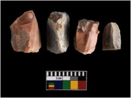 | Description / विवरण | There are n-4 of Cores. All are made of Quartz. All are fully fluted cores.2 with trace of crested ridge flake. |