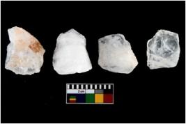 | Description / विवरण | There are n-4 of intact utilized flakes made up of Quartz. Some of them have bulge of percussion and some are flat flakes. |
