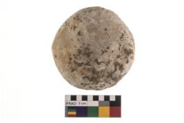| Description / विवरण | A partially broken specimen of roughly round shaped hammer stone with battered periphery along with the circumference. |