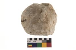 | Description / विवरण | A partially broken specimen of roughly round shaped hammer stone with battered periphery along with the circumference. |