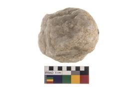 | Description / विवरण | A partially broken specimen of roughly round shaped hammer stone with battered periphery along with the circumference. |