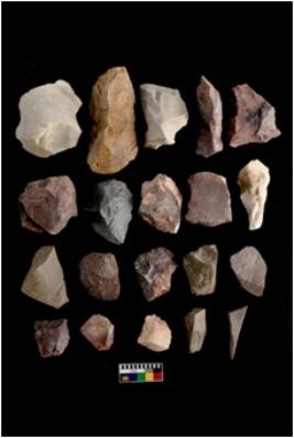 | Description / विवरण | There are n-20 of intact flake cores made up of Chert. Some of them have bulge of percussion and some are flat flakes. |