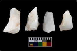 | Description / विवरण | There are n-4 of intact utilized flakes made up of Quartz. Some of them have bulge of percussion and some are flat flakes. |