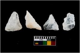 | Description / विवरण | There are n-4 of intact utilized flakes made up of Quartz. Some of them have bulge of percussion and some are flat flakes. |
