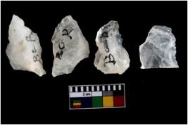 | Description / विवरण | There are n-4 of intact utilized flakes made up of Quartz. Some of them have bulge of percussion and some are flat flakes. |