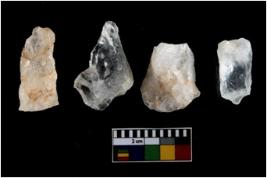 | Description / विवरण | There are n-4 of intact utilized flakes made up of Quartz. Some of them have bulge of percussion and some are flat flakes. |