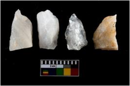 | Description / विवरण | There are n-4 of intact utilized flakes made up of Quartz. Some of them have bulge of percussion and some are flat flakes. |