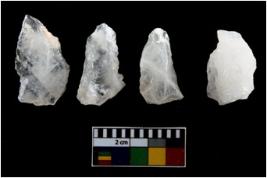 | Description / विवरण | There are n-4 of intact utilized flakes made up of Quartz. Some of them have bulge of percussion and some are flat flakes. |