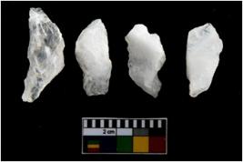 | Description / विवरण | There are n-4 of intact utilized flakes made up of Quartz. Some of them have bulge of percussion and some are flat flakes. |
