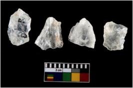 | Description / विवरण | There are n-4 of intact utilized flakes made up of Quartz. Some of them have bulge of percussion and some are flat flakes. |