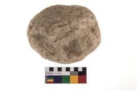 | Description / विवरण | A partially broken specimen of roughly round shaped hammer stone with battered periphery along with the circumference. |