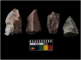 | Description / विवरण | There are n-4 of Cores. All are made of Chert. All are fully fluted cores. 3 with trace of crested ridge flake. |
