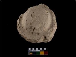 | Description / विवरण | A complete specimen of terracotta storage bin stopper. It is almost globular, knob shaped stopper of buff coloured terracotta, heavy in weight. It is made of red ware, fine fabric, smooth texture and well fired. |