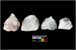 | Description / विवरण | There are n-4 of intact utilized flakes made up of Quartz. Some of them have bulge of percussion and some are flat flakes. |