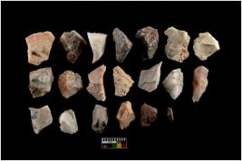 | Description / विवरण | There are n-20 of intact flake cores made up of Chert. Some of them have bulge of percussion and some are flat flakes. |