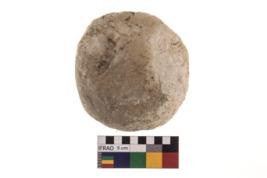 | Description / विवरण | A partially broken specimen of roughly round shaped hammer stone with battered periphery along with the circumference. |
