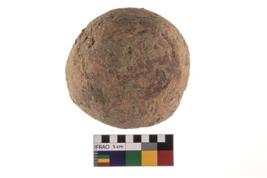 | Description / विवरण | A partially broken specimen of roughly round shaped hammer stone with battered periphery along with the circumference. |