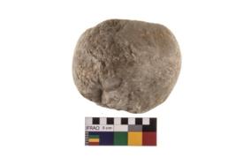 | Description / विवरण | A partially broken specimen of roughly round shaped hammer stone with battered periphery along with the circumference. |