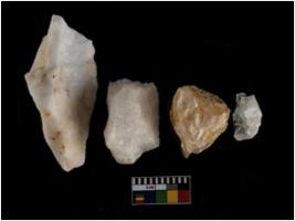 | Description / विवरण | There are n-4 of Cores. All are made of Quartz. All are fully fluted cores . 1 with trace of crested ridge flake. |