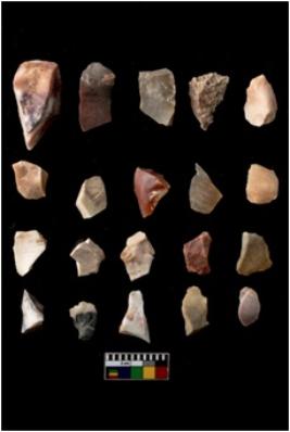 | Description / विवरण | There are n-20 of intact flake cores made up of Chert. Some of them have bulge of percussion and some are flat flakes. |
