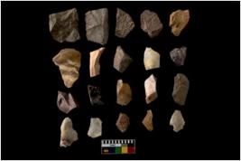 | Description / विवरण | There are n-20 of intact flake cores made up of Chert. Some of them have bulge of percussion and some are flat flakes. |