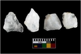 | Description / विवरण | There are n-4 of intact utilized flakes made up of Quartz. Some of them have bulge of percussion and some are flat flakes. |