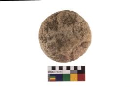 | Description / विवरण | A partially broken specimen of roughly round shaped hammer stone with battered periphery along with the circumference. |